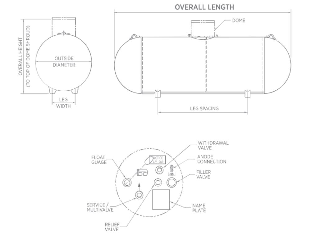- Cumple con la última edición del código ASME para recipientes a presión, Sección VIII, División 1. Cumple con NFPA 58.